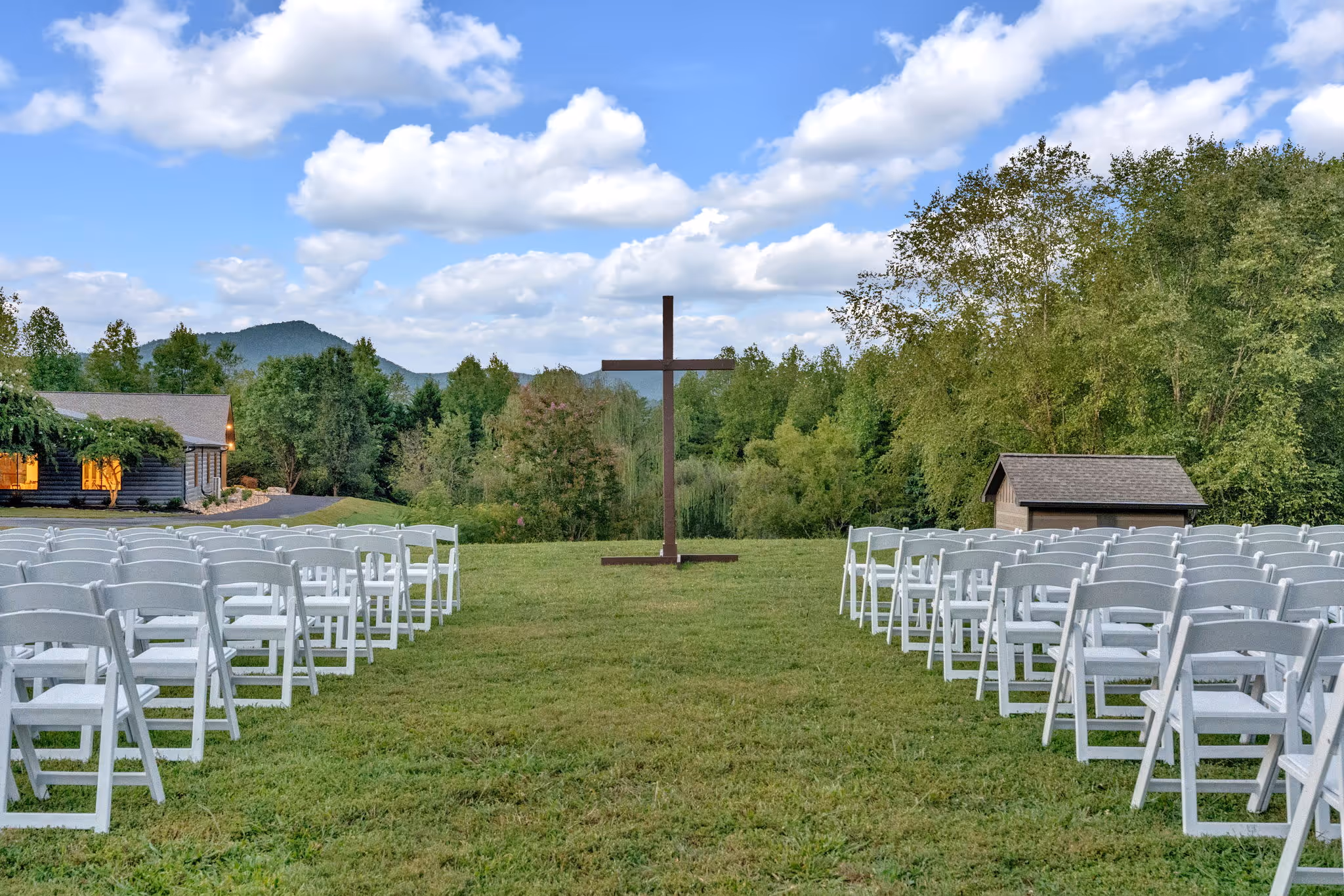 A serene and romantic field location with magnificent views of the surrounding landscape.